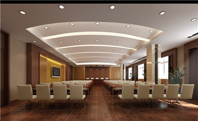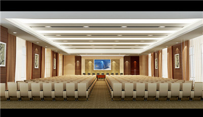 會議室(報告廳)是以語言為主的聲學(xué)場所,聲學(xué)環(huán)境設(shè)計上,在要保證語言清晰度的前提下,還要保證聲場分布均勻、語言有親切感和空間感。同時還要結(jié)合燈光、色彩等做好裝飾設(shè)計。