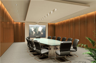對于四方體的普通會議室聲學(xué)裝修,首先需考慮采用兩種類型吸音材料(多孔性吸音材料、結(jié)構(gòu)性/多共振體吸音材料),以達到全頻均衡吸音的效果,兩類材料可間隔性安裝。其次在材料布局上,可做到主席臺正對墻做強吸音處理,主席臺后墻及頂部適當做吸音處理;兩側(cè)面墻做擴散處理,頂部可適當做擴散處理。