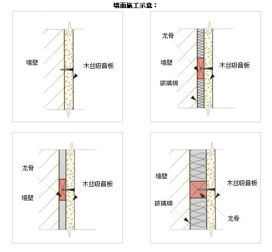 c.輕鋼龍骨,在高層較高或防火要求等級(jí)較高的時(shí)候,可能不允許施工木龍骨的情況下,一般采用爆炸螺絲吧小段的木墊片固定在輕鋼龍骨上,然后將木絲吸音板固定在木皮上即可。