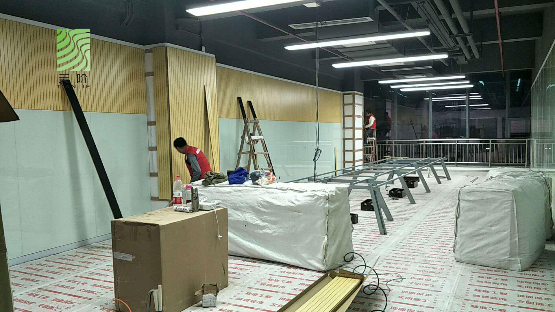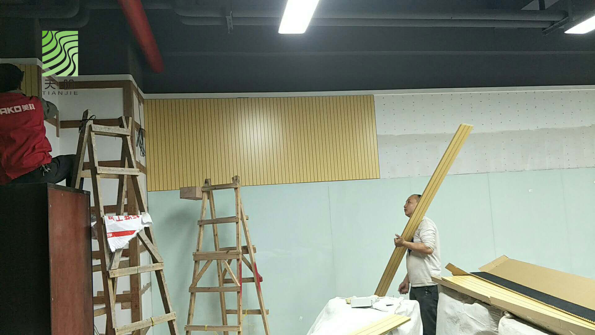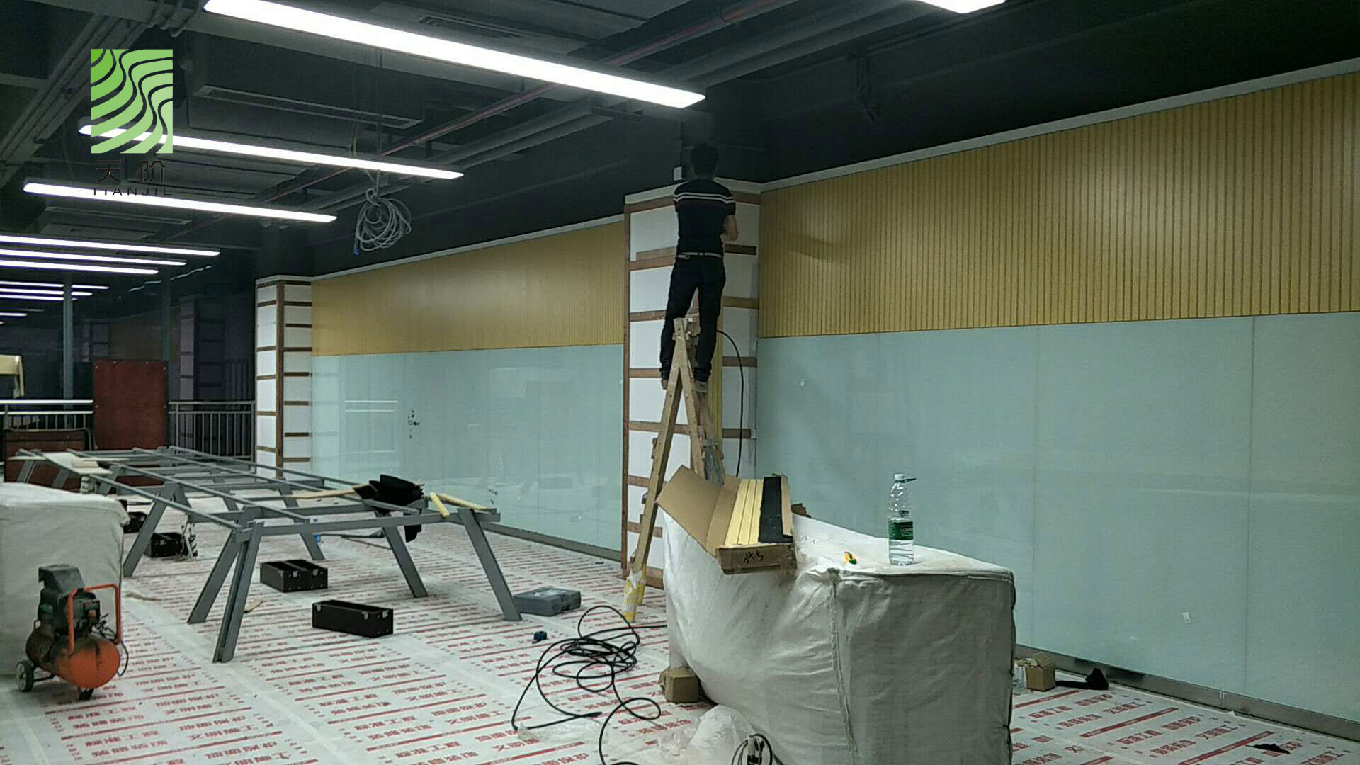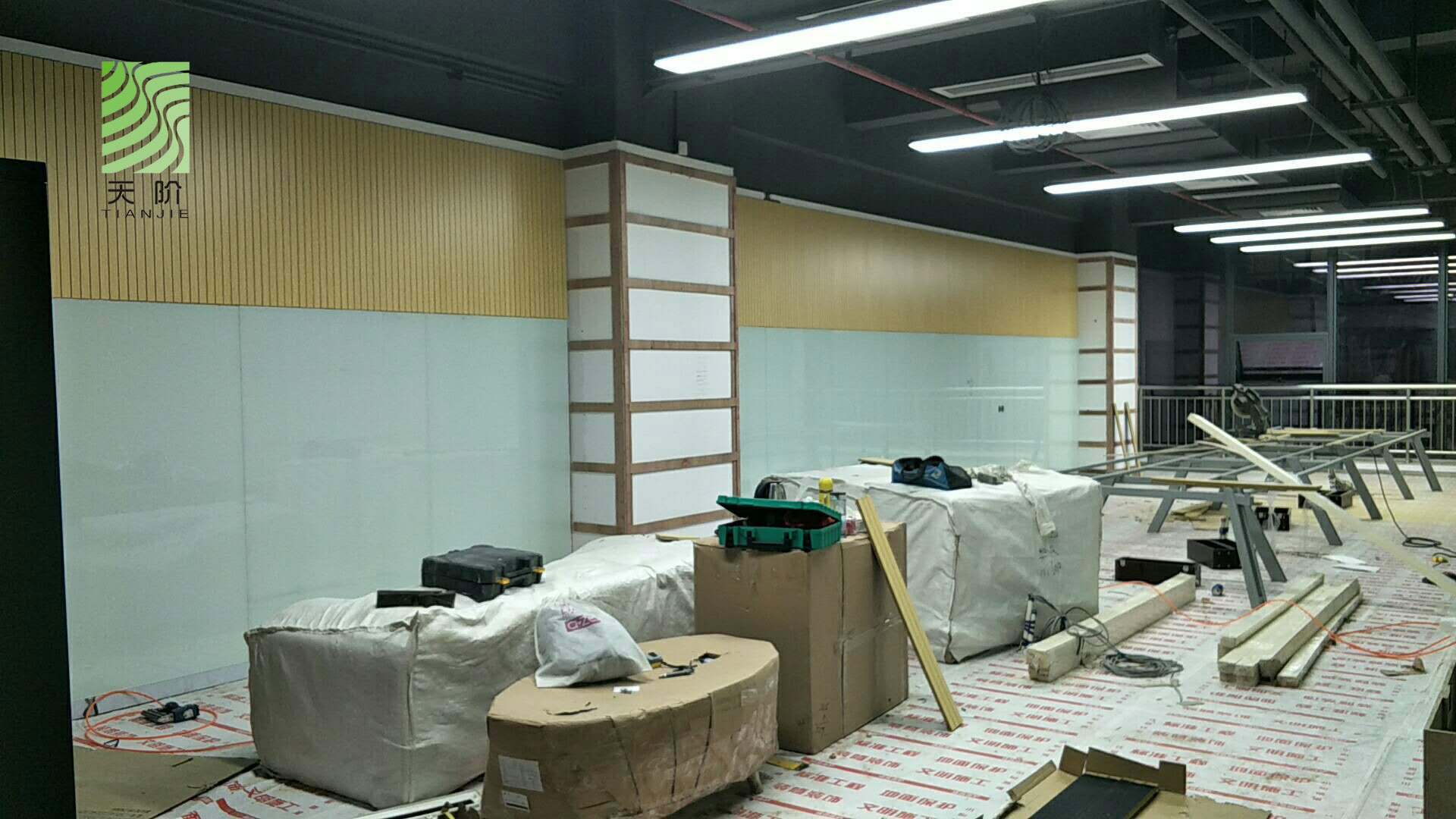 東莞藍思科技有限公司辦公室經和多家吸音板公司對比,最終選用了天階吸音板,安裝效果圖如下: