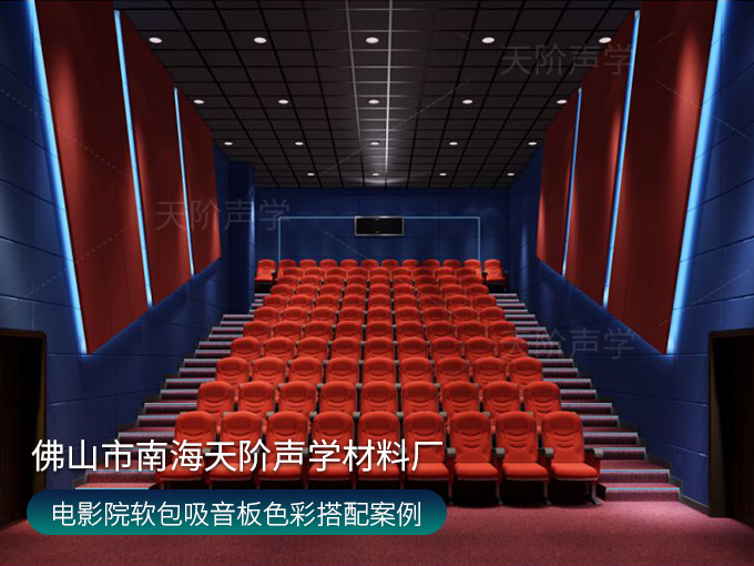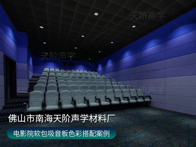 低調神秘的深色色調電影院設計,墻面選用聚酯纖維吸音板,拼色安裝設計,做不燃處理,舒適又安心,吸收噪音雜音很有效果。