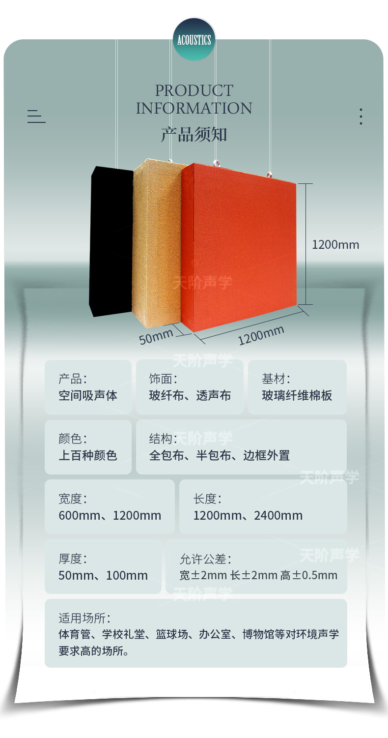 飾面:普通布料,阻燃透聲布料,阻燃玻纖布